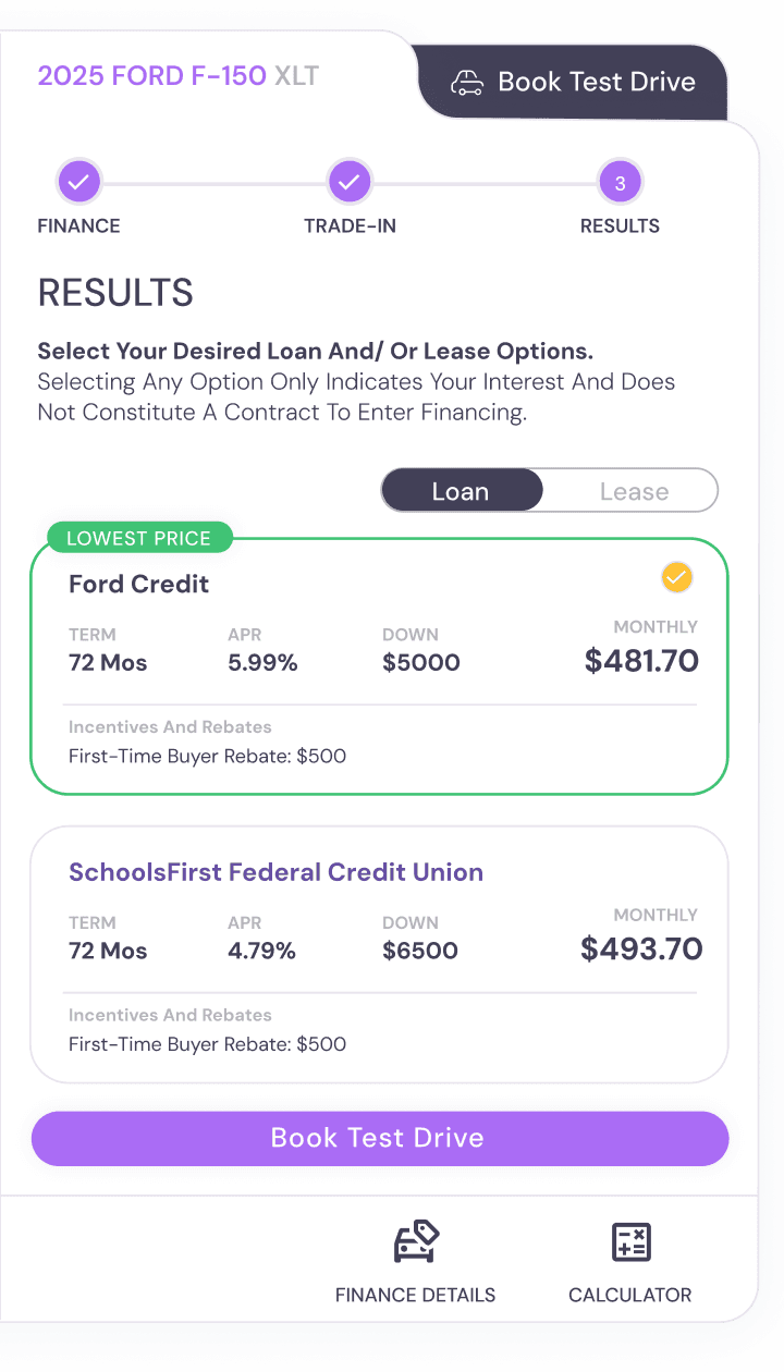 Personalized lease and loan options from multiple lenders—using a few anonymous details.